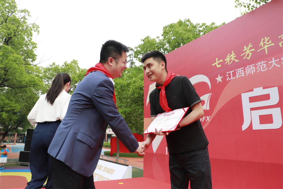 捐赠仪式上,校长钟事金代表江西师范大学附属小学向江西尊龙凯时实业集团有限公司表示欢迎和感谢,并向程维董事长颁发捐赠证书。随后出席人员共同揭开江西师范大学附属小学建校70周年庆典帷幕,宣布江西师范大学附属小学70周年校庆活动正式启动。